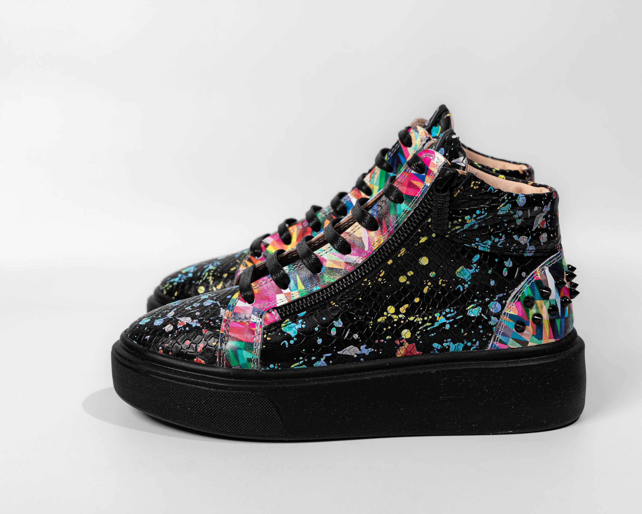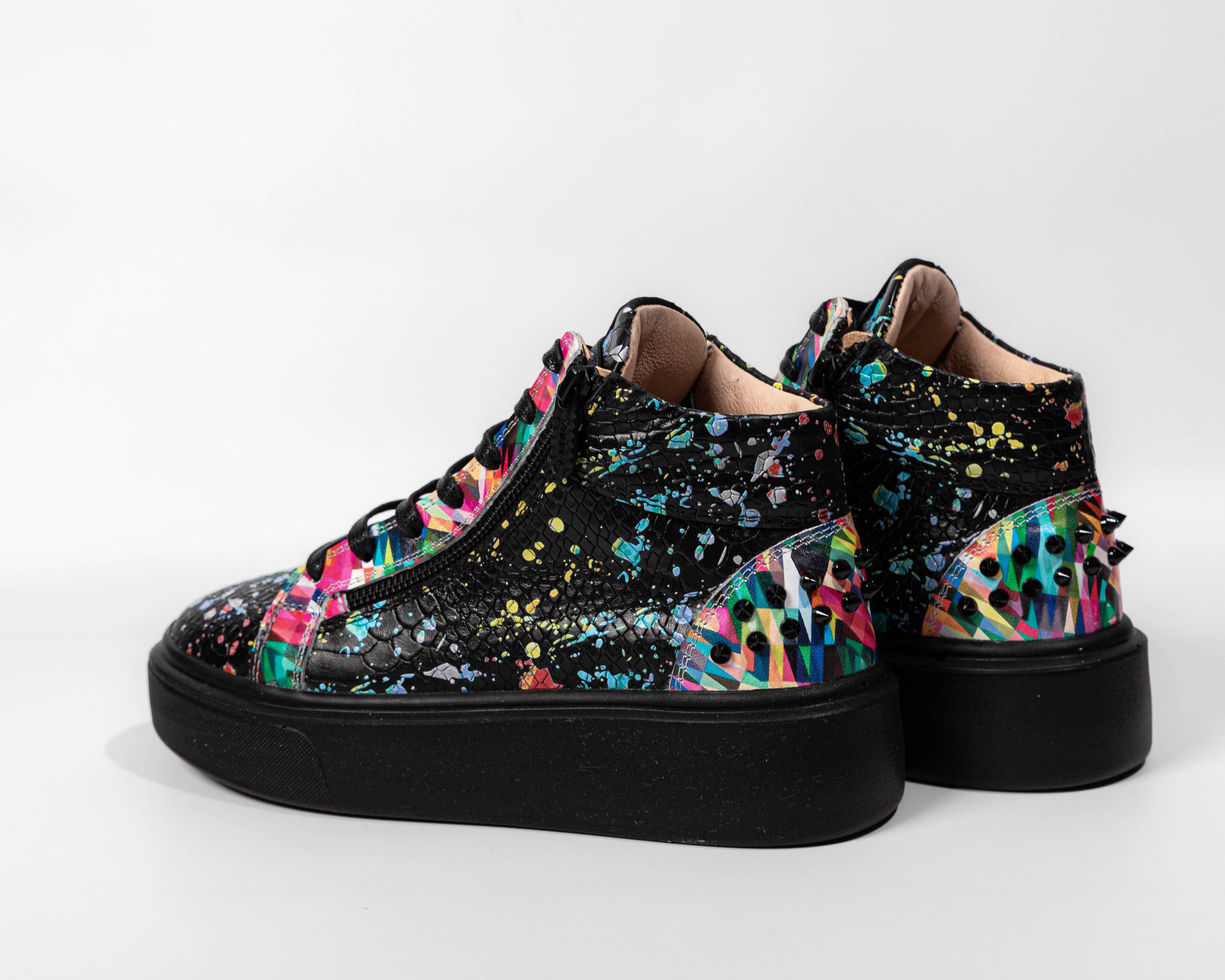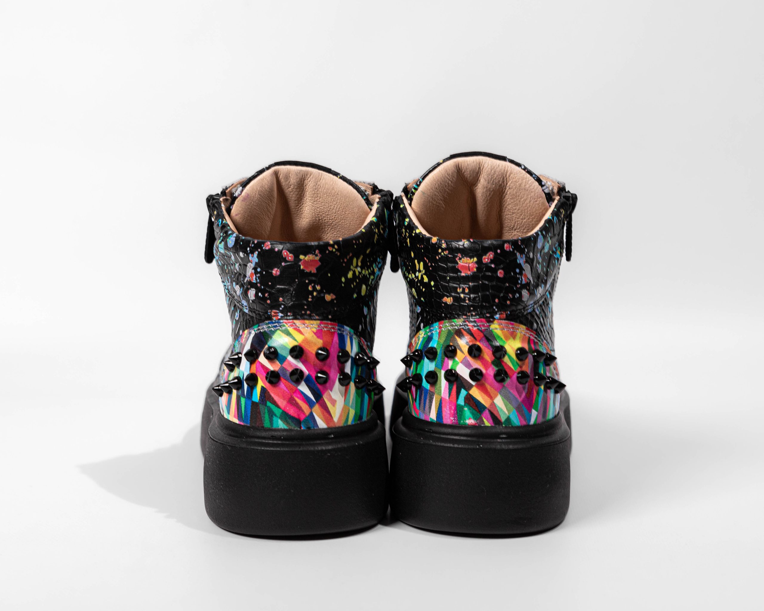 Made of python-embossed leather and colored leather. Accessorized with black studs. Closure with laces and zippers. Sole height: 4-4.5cm, 100% POLYURETHANE